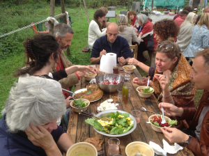 We entertained a gathering of, debatably, ‘la creme de la creme’ of Forest Row society in late September, for a 3 course slap up meal of our own produce, bar the dairy. Raising funds for a neighbours 20 year old pile of well rotted horse manure, guests were entertained by Jazz guitarist Nikki Mitchell with a complementary glass of home made wine thrown in.