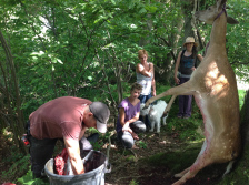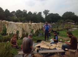Sorting fleece, ready for the peg looms. An unexpected gift: a young buck, hurt by an impact (probably road) staggers into the field on Tune-in Tuesday, just as we are getting ready to start working the garden. We honour the deer by using the precious resource. Feeling that we are being provided for, we gratefully share the meat. Unfeasibly large blackcurrants.